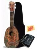 Kala KA-PSS Mahogany Pineapple-Style Soprano Ukulele Bundle with Hard Case, Cherub Tuner, and Polishing Cloth