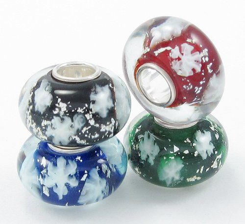 Free Shipping Let, This gorgeous set of high quality murano includes four glass beads. These snowflake beads can be used as a festive way to spice up your jewelry. Each has a .925 sterling silver core, and is suitable for 3mm Cable European Charm Bracelets. They are interchangeable with other European bead charms, and are compatible with Pandora, Troll, Chamilia, Biagi & other styles of European bracelets.Quality beads sell at wholesale price. We will ship as pictured (no duplicates). All beads are brand new. Hole size is approximately 4.5mm, dimension of beads are approximately 14mm by 7mm (As they are all handmade there may be a slight difference in color or size). Check all of our items to see our fantastic combination of unique beads and charms, featuring - birthstone items, dressy beads, casual beads, classic combinations, and all sorts of new and fun glass and silver jewelry designs that are compatible with your European bracelet style! If you have a good experience here, please recommend my store to your friends! Thank you so much!