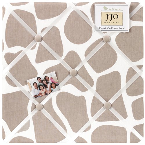 Giraffe Fabric MemoryMemo, Show off postcards, notes and photos on this JoJO Designs fabric memo board with button detail. Just slip your mementos behind the grossgrain ribbon to create an engaging piece of original wall art. These adorable memo boards by JoJO Designs have been created to coordinate with the matching children's bedding sets. Even if you have not purchased a JoJO Designs bedding set, these wonderful wall decorations can enhance the decor of any room.